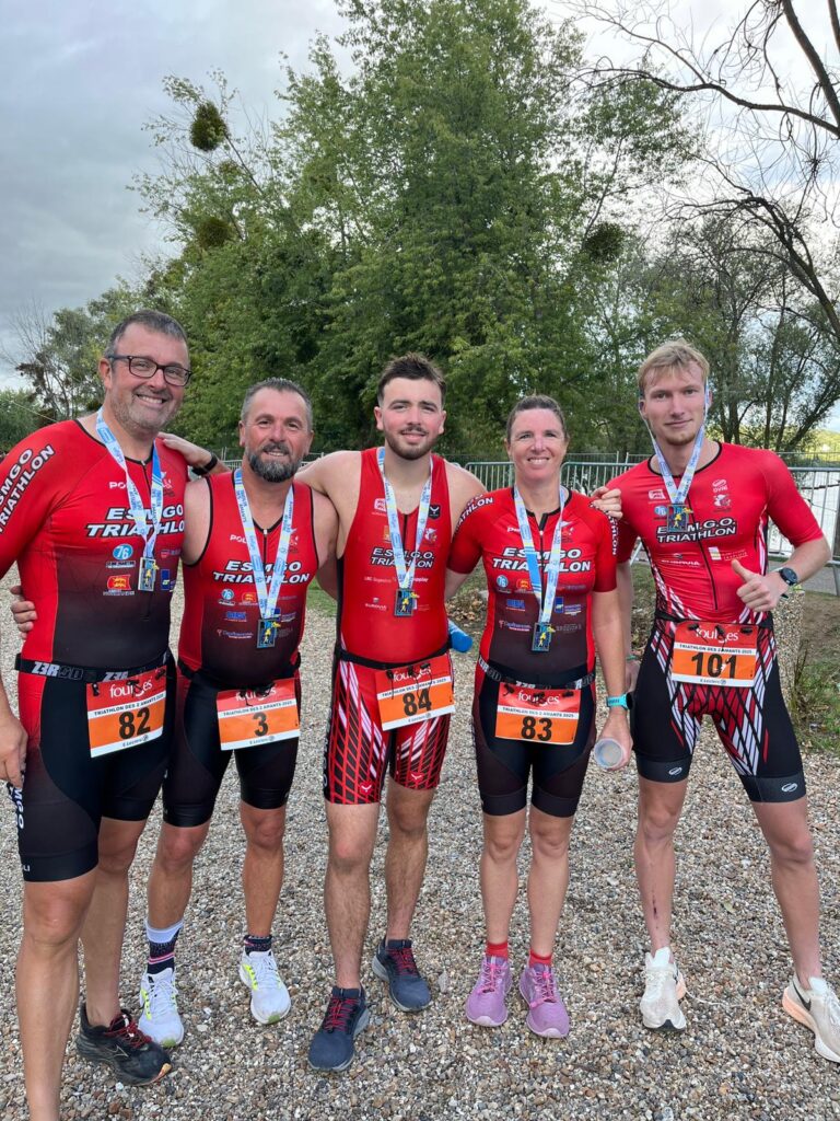 Le même week-end que le triathlon des Vikings à Pont-l’Évêque, avait lieu sur la base de Lery Poses, à coté de Rouen, le triathlon des 2 amants. Plusieurs rouges et noirs étaient au départ des formats S ou L.