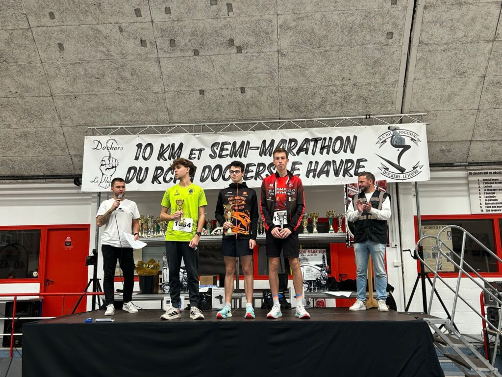Dimanche 06 Octobre avait lieu le traditionnel 10 Km du RCPH, le club des dockers du Havre. Un seul membre des đź”´âš« , Jules en catĂ©gorie juniors hommes. Il n’aura pas fait le dĂ©placement pour rien, il repart avec la 3eme place et un très beau chrono, malgrĂ© le vent.
